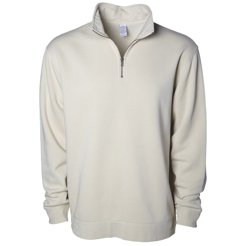 The Independent Trading Co. Unisex Pigment Ivory Pigment-Dyed Quarter-Zip Pullover offers a vintage-washed look perfect for custom or corporate designs that need a relaxed, worn-in feel. Its pigment-dyed finish gives each piece unique character, while the quarter-zip style adds versatility. Ideal for boutiques, resort merchandise, or casual branded apparel with a distinctive aesthetic.Highlights
