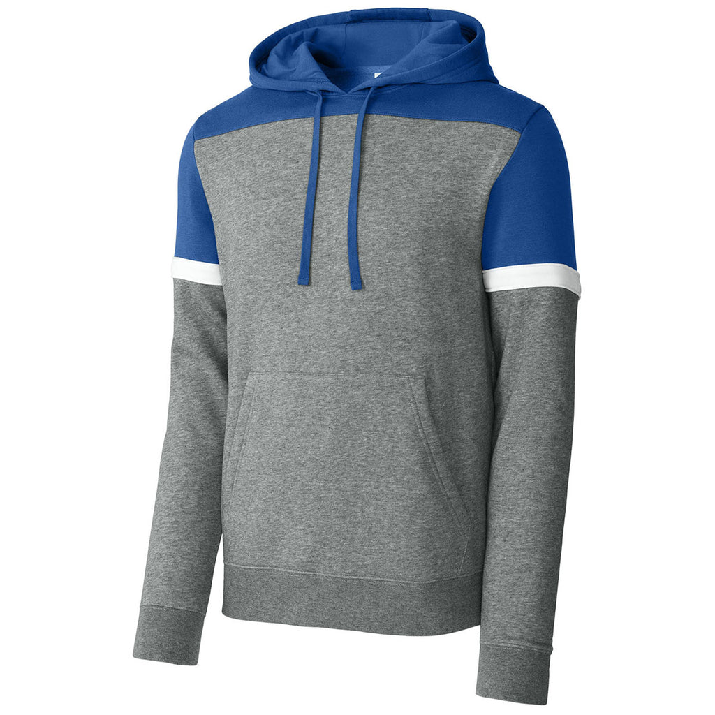 The Sport-Tek Men's True Royal/Vintage Heather Drive Fleece Colorblock Hoodie with a corporate design is a dynamic blend of comfort and style. Featuring a color-blocked design, this hoodie is made from soft, durable fleece that ensures warmth and breathability. Ideal for athletic and casual wear, it provides excellent freedom of movement while maintaining a modern, athletic aesthetic.Highlights