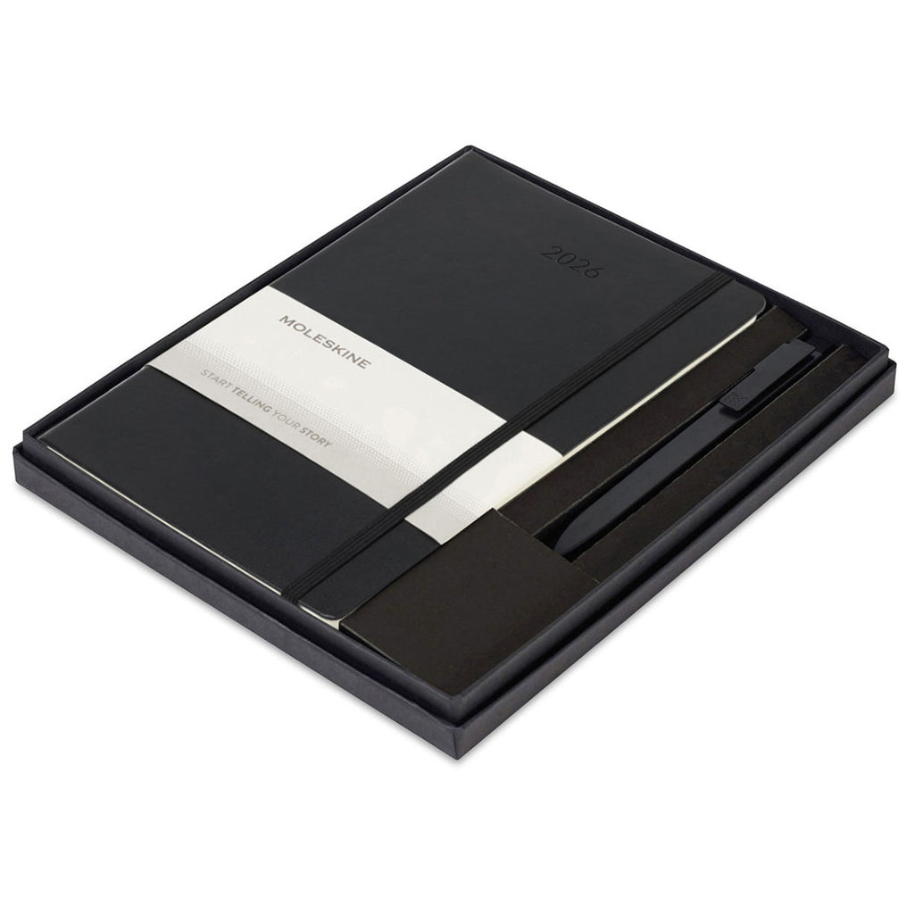 - This gift set includes one Soft Cover Large 12-Month Weekly 2026 Planner and one GO Pen packaged in a two-piece Moleskine gift box