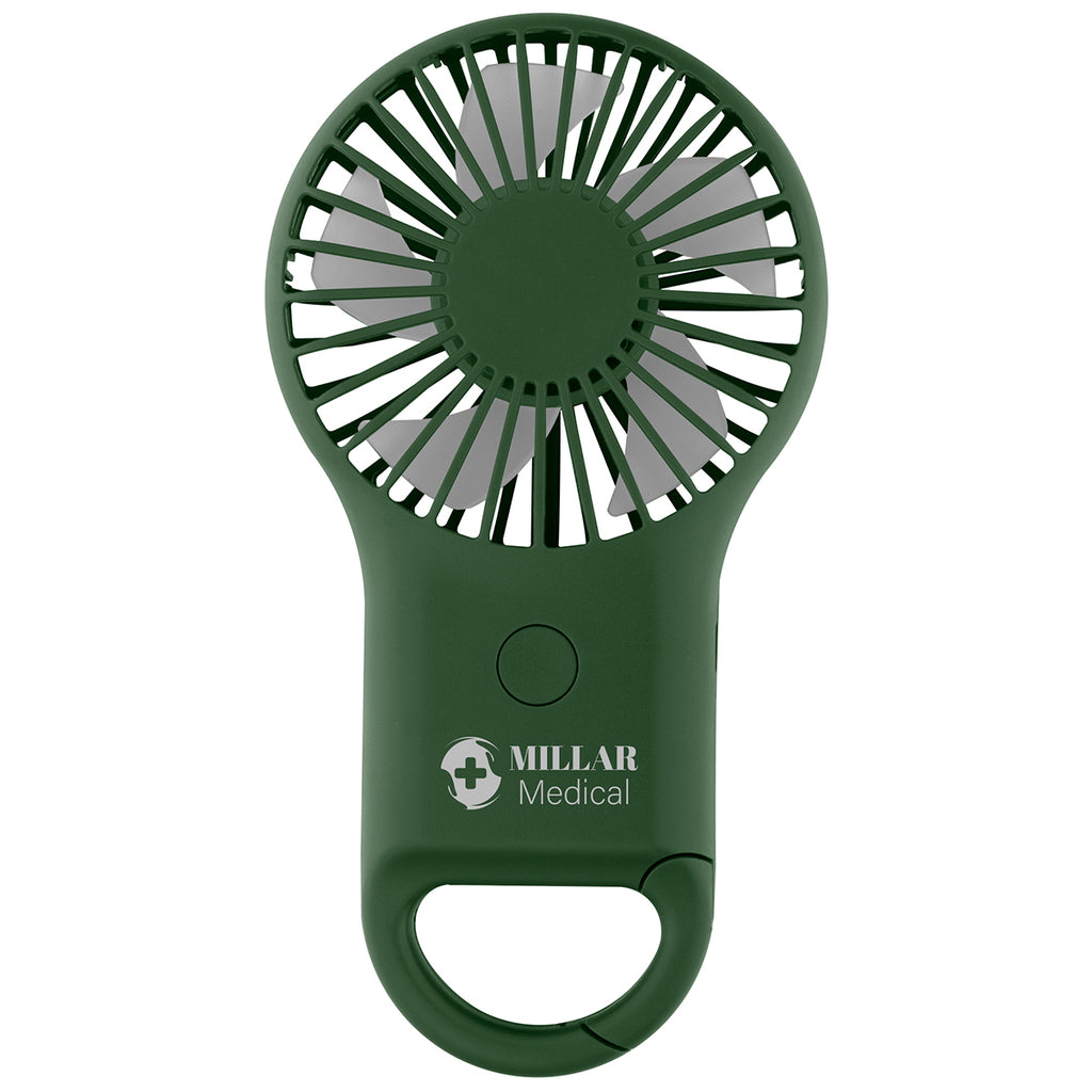 Hit Dark Green Rechargeable Handheld Fan With Carabiner