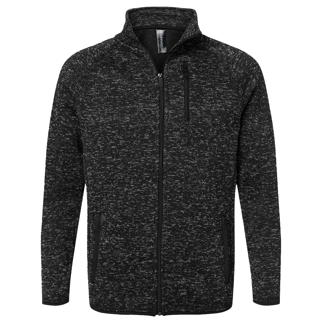 Find your softer side with a custom Burnside Men's Heather Black Sweater Knit Jacket. Made of 100% polyester fleece with sweater knit face this full zip sweater jacket keeps you cozy with a stylish edge. The soft fabric is great for cuddling, but tough enough to face the chilly weather when Mother Nature gets cranky. Raglan sleeves offer plenty of room for mobility whether going for a run, hiking, biking, or hanging out. Add a custom logo to use this sweater jacket as an employee gift or to give out at corporate events. Teo covered zippered pockets and a left chest pocket keep keys and a your phone close at hand as you talk business or hang out with friends at a bar. Place an order today with a corporate logo to give these to those who keep your company great.