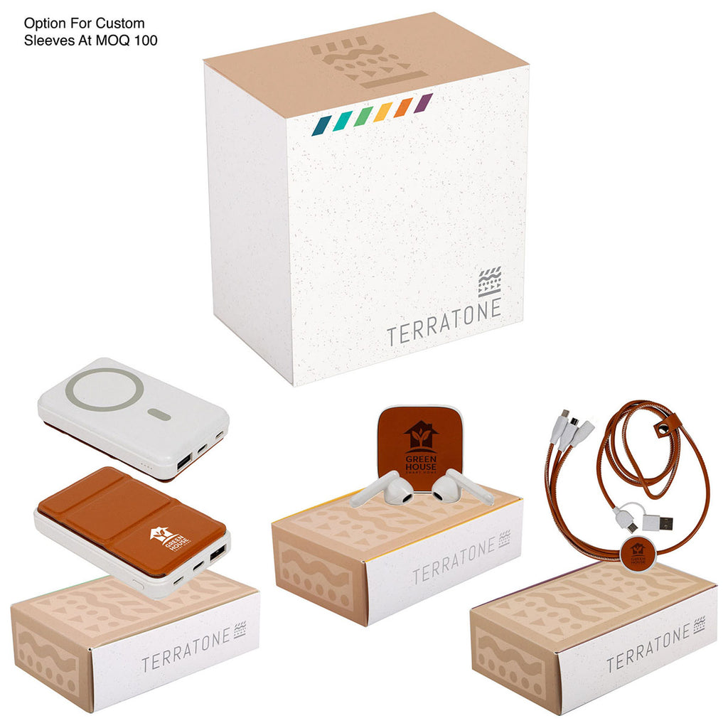 • Includes; TerraTone Wireless Earbuds and TerraTone 3-in-1 Charging Cable, and TerraTone Powerbank & Wireless Charger.