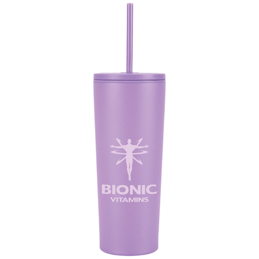 The Logomark Purple Bayard 24 oz. Double Wall Steel/PP Liner Straw Tumbler is a versatile custom drinkware option perfect for on-the-go lifestyles. It features a flip-top lid with a straw, and the double-wall design helps maintain drink temperature. Ideal for gyms, giveaways, or wellness campaigns looking for functional items with bold branding impact.The minimum order for this product is 50 pieces.