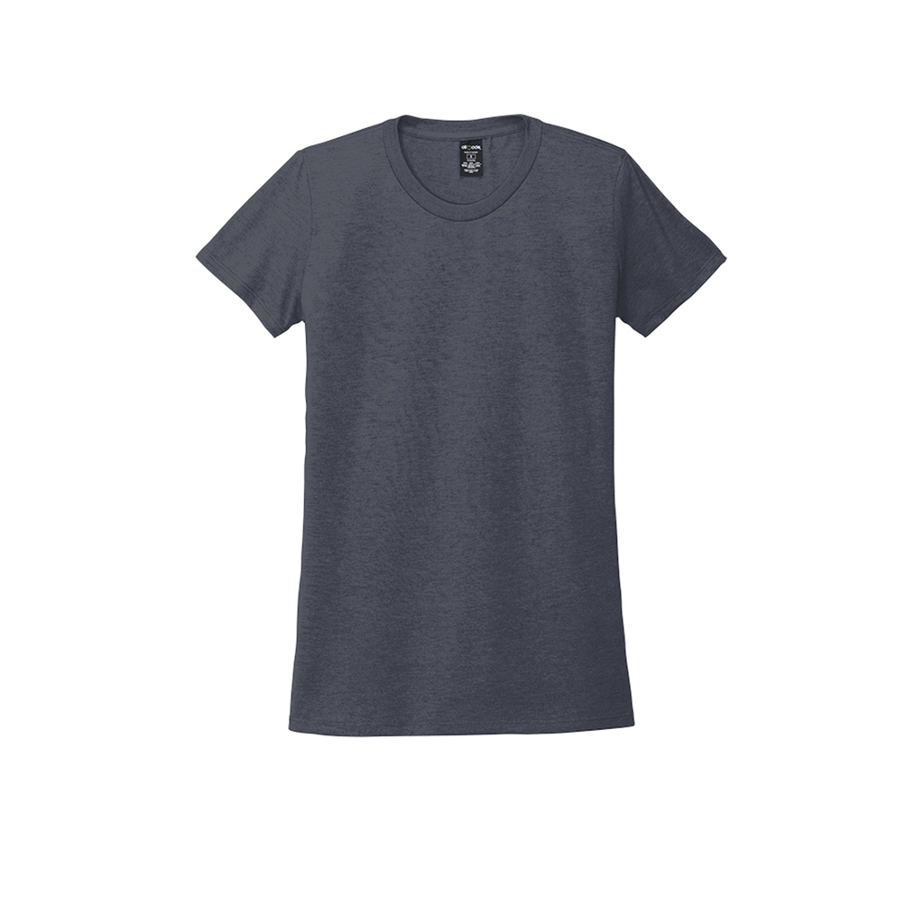 Design screen print for the Allmade Women's Rebel Blue Tri-Blend Tee for a sustainable clothing option that is comfortable and good for the environment. Add a company logo to use as employee apparel that also doubles as recycled apparel for the more conscientious employees. Made partially of recycled materials that are the equivalent of up to six plastic water bottles, this rib neck women's tee is gorgeous and durable. Add a custom logo to support a local team or give as a custom gift that can be worn as often as desired.