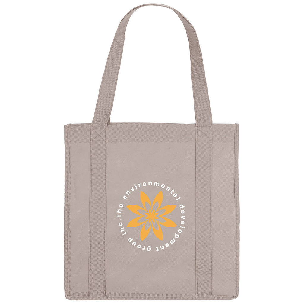 Shop with ease using a custom Good Value Grey Grocery Tote. Whether you own a store, sell a specific product, or just like to show off your style, this tote is perfect for staying green and keeping your purchases organized. The reusable tote is ideal for quick trips to the market after work or school. Easily resell to encourage use in your store.Please note that there may be a delay in processing your 48-Hour order if artwork revisions are required. Orders requiring revisions or additional details will no longer qualify for 48-Hour production. The 48-Hour lead time is for production only, not delivery. You will select your shipping speed at checkout. 48-Hour orders are not eligible for cancellation. All sales are final. Learn more on our FAQ Page.