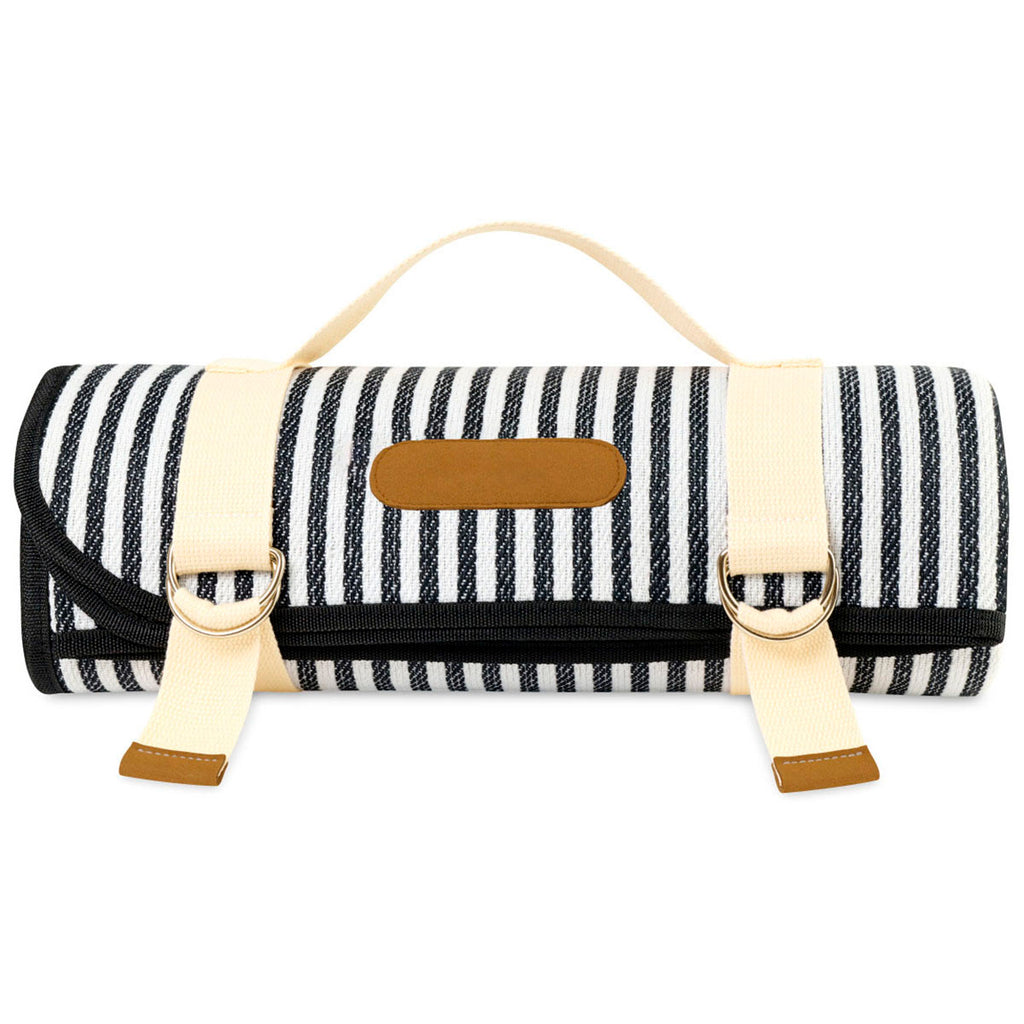 Gemline Black & White Stripes Life's a Picnic Roll-Up Blanket