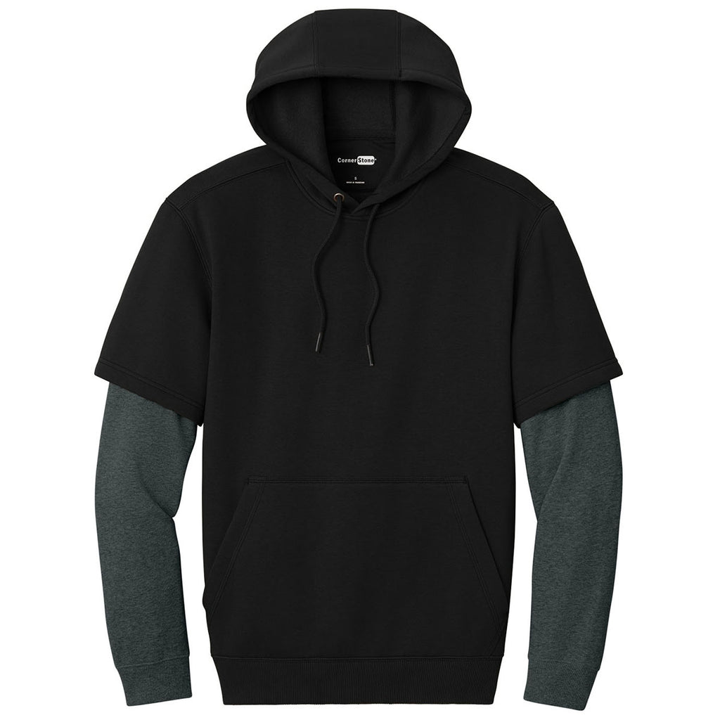 CornerStone Men's Black/Charcoal Heather Touch Fleece Layered Hoodie
