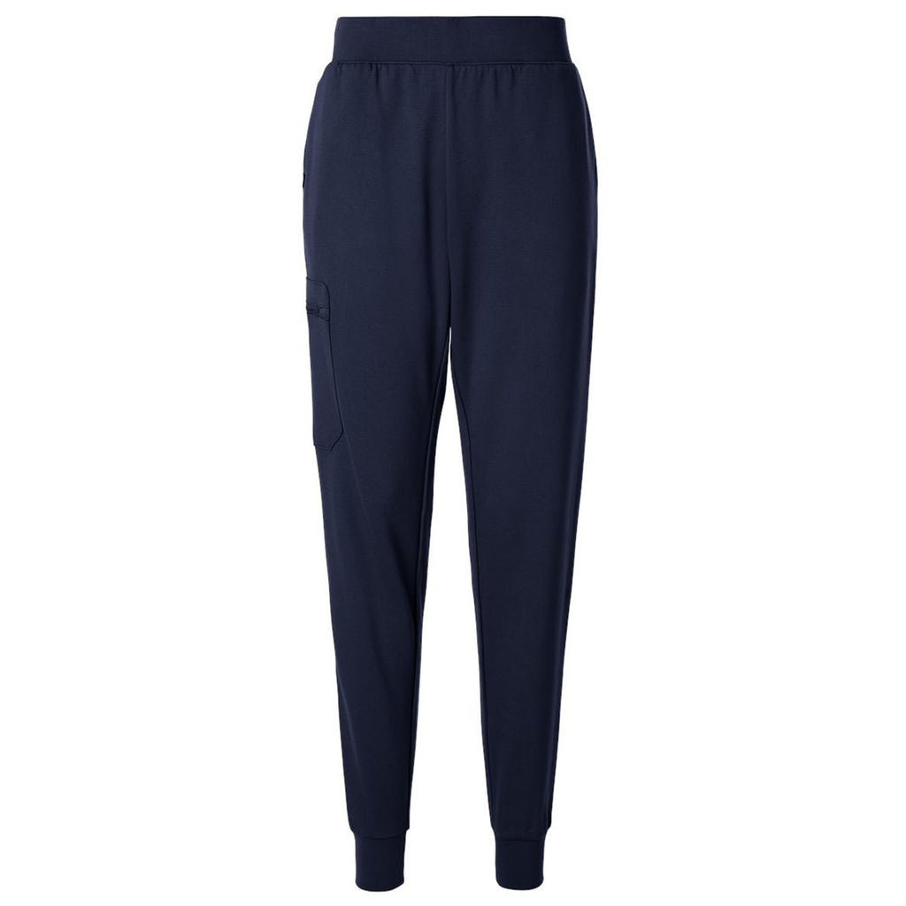 Jaanuu Women's Midnight Navy Rubi Ultrasoft Scrub Joggers with custom embroidery make a great gift or corporate uniform for those in the healthcare or health and wellness industries. These slim fitting joggers have four-way stretch, moisture management properties, and several pockets for convenience as you go about your day.
