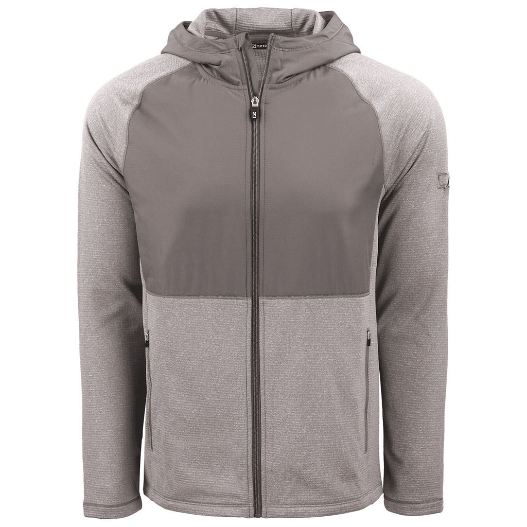 Cutter & Buck Men's Elemental Grey Heather Peshastin Fleece Recycled Hybrid Jacket