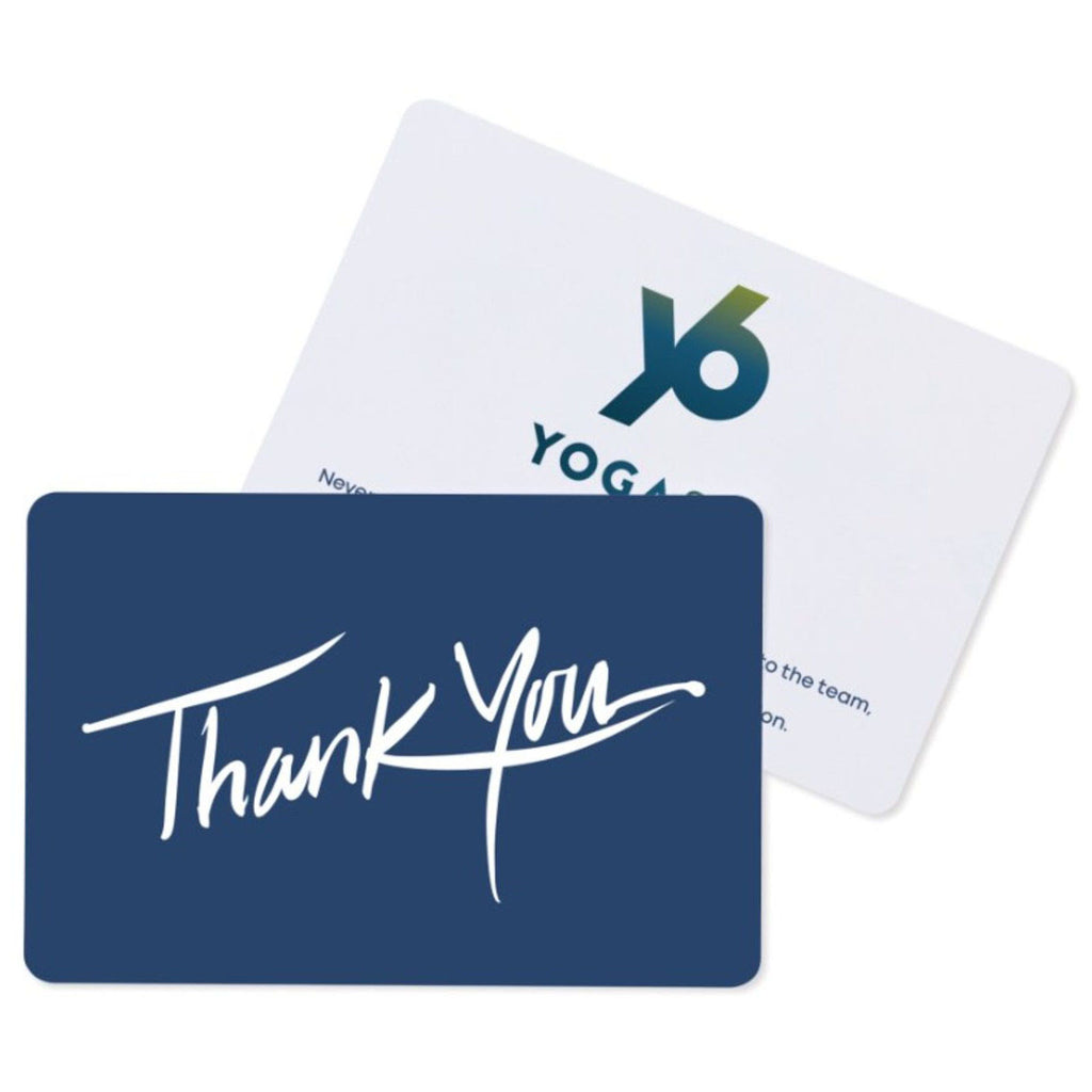 Add a corporate design to the Gemline White Deep Blue Thank You Greeting Card for a professional way to say "thank you." The elegant, deep blue hue adds a touch of sophistication, making it perfect for corporate clients or employees. It's an ideal addition to a gift set or as a standalone gesture of appreciation.The minimum order for this product is 6 pieces.
