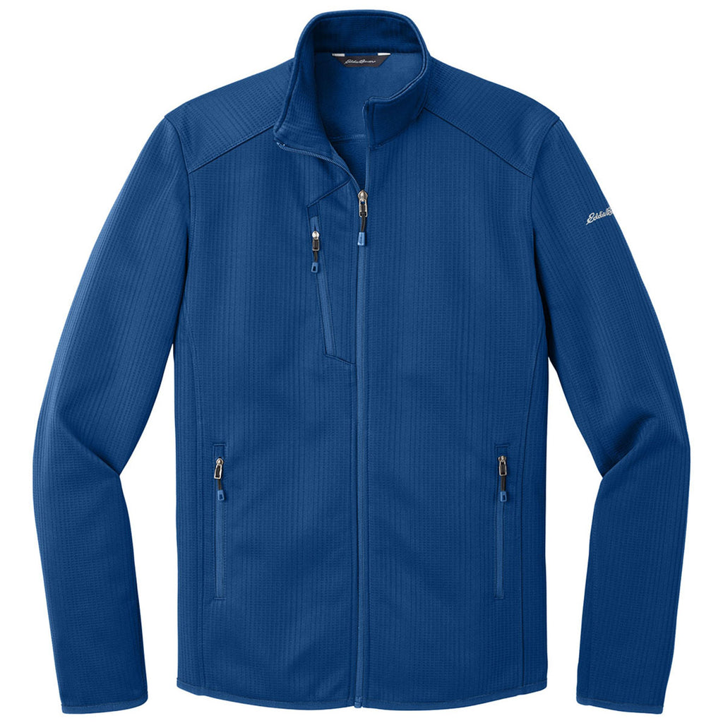 Designed with textured and smooth faced fleece, the custom logoed Eddie Bauer Men's Cobalt Blue Dash Full-Zip Fleece Jacket represents the ideal jacket to take with you on business trips. The lightweight fabric does not slow you down when you hustle through airport terminals to catch flights. As opposed to most other styles of jackets, the fleece jacket easily folds and stores inside backpacks and duffel bags. Durable 100% polyester withstands the punishment delivered by bumpy airplane rides, as well as active professionals that like to participate in intense athletic competitions. Add your corporate logo to display for the people you pass by during business travel.