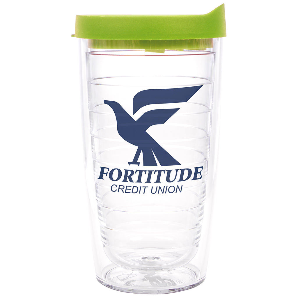 Tervis Clear Tumbler with Lime Green Lid Classic Tumbler 16 oz. - Printed with a corporate logo is a fun and functional way to draw attention to your brand. Whether you are selling these tumblers, giving them away with purchase, or using them as an incentive for a recruiting event, they will be a fan favorite. Great for the morning commute or just to enjoy your favorite drink.