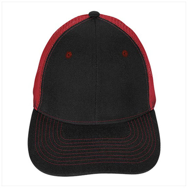 Koozie Black/Red Mid-Profile Accent Mesh Snapback CapThe minimum order for this product is 48 pieces.