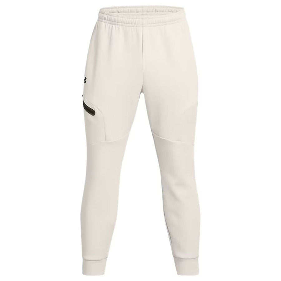 Move freely in the corporate Under Armour Men's Summit White/Black Unstoppable Fleece Joggers. Crafted for comfort and performance, these joggers feature four-way stretch and moisture-wicking fabric. The athletic fit and soft fleece lining make them perfect for training, travel, or everyday wear.Highlights