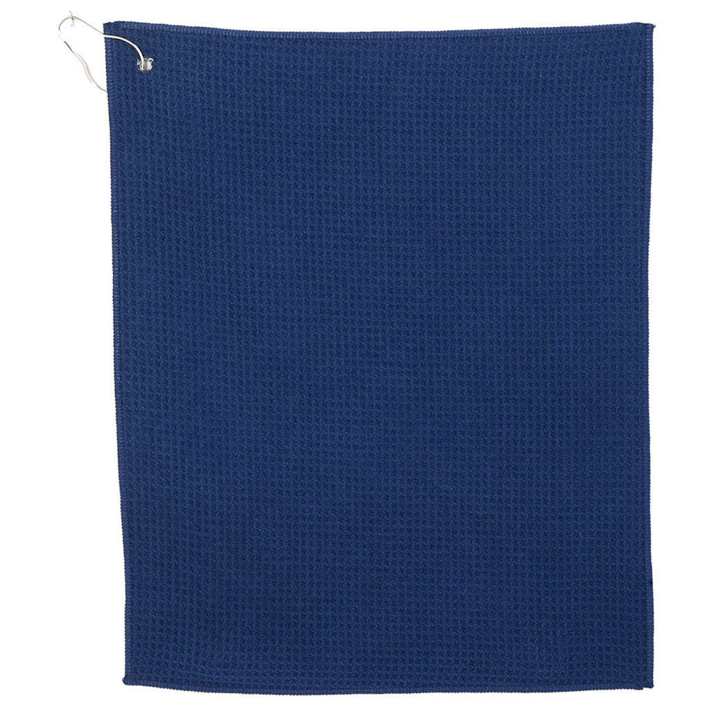 Add your corporate design to the Leed's Navy 15" x 18" RPET 200g Microfiber Waffle Towel to sell at your pro shop or gift to the golfers in your life. The convenient waffle towel is sized for on-course cleaning and drying, while the metal grommet and hook can easily be attached to your golf bag for fast access.