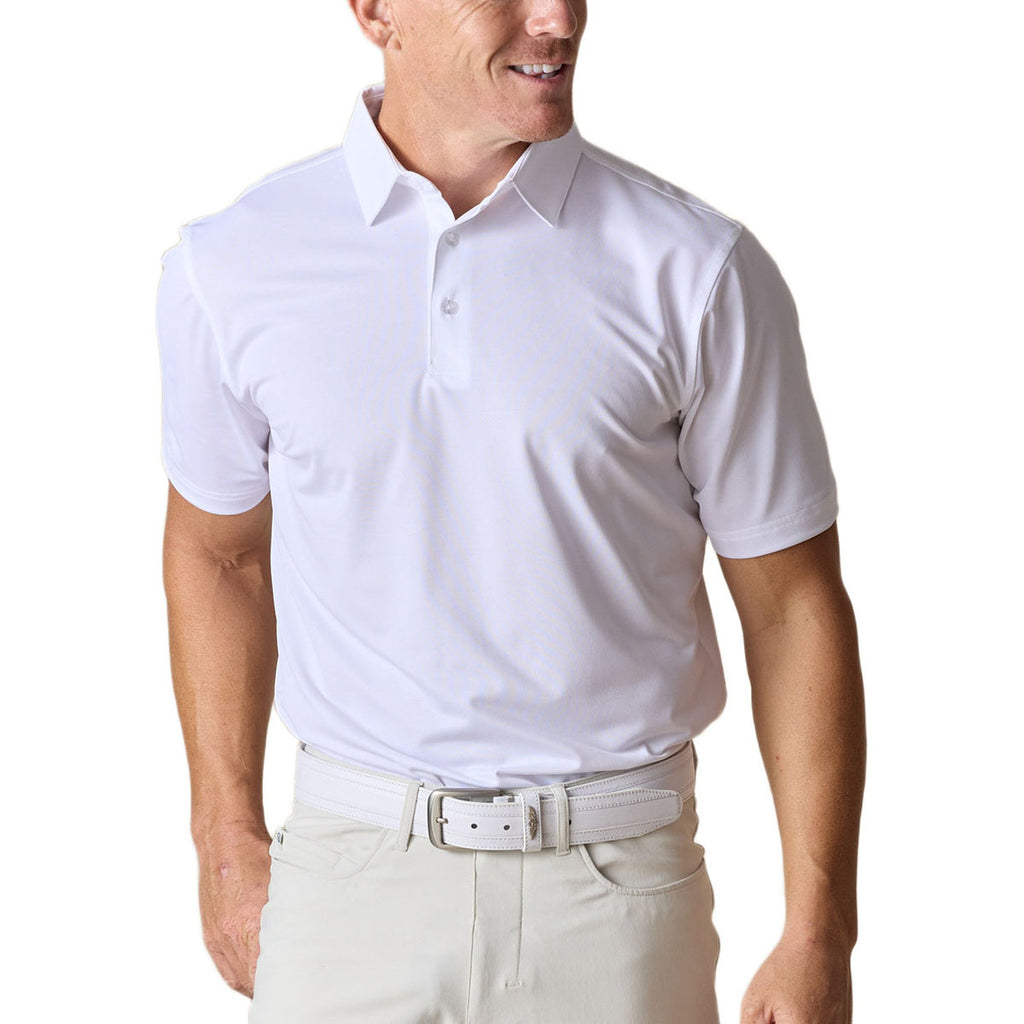 Perfect for corporate tournaments or professional gifts, the Straight Down Men's White Sullivan Polo delivers style with performance. Its breathable, stretchy fabric keeps you comfortable from the office to the course. Subtle stripes add a clean, modern look, while moisture-wicking technology ensures lasting wear. A smart choice for versatile wardrobes and branded apparel.Highlights