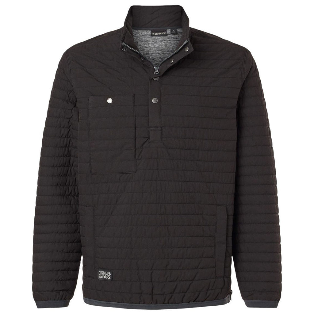 Stay warm in a custom Dri Duck Men's Black Keystone Quilted Pullover. The 2-layer stretch fabric is bonded to a waterproof membrane with polyfill insulation and a quilted look for style. The dual-closure, four-snap placket protects you whether you are hiking, commuting, or simply going about your day. Give as a gift or add to your logoed apparel options.
