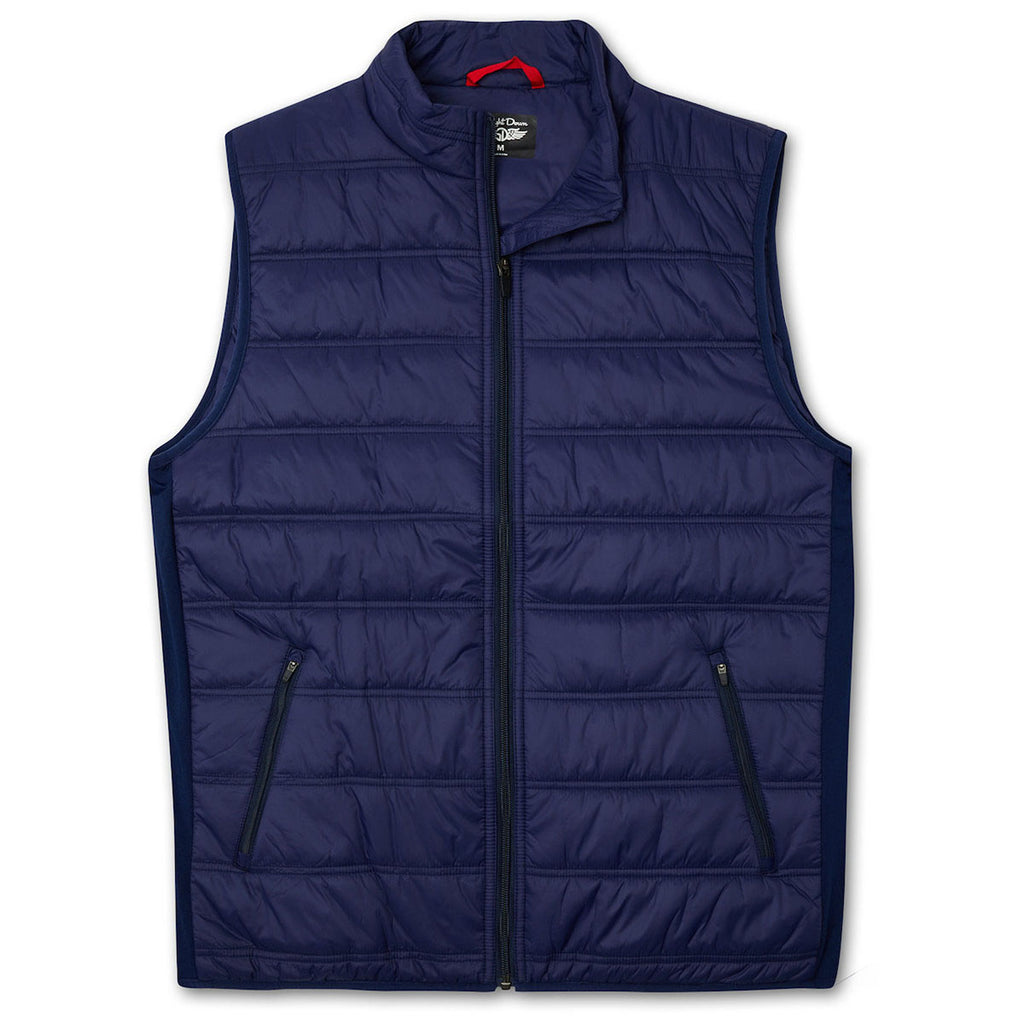 Ideal for corporate layering, the Straight Down Men's Indigo Delta Vest brings warmth without the weight. Windproof fabric and a modern cut make it a reliable option in mild weather. Sleek zip pockets and subtle quilting offer style and function, perfect for clients or staff who need a refined outer layer.