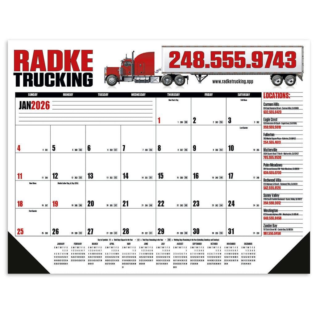 - Each calendar includes one set of black vinyl corners at no additional charge