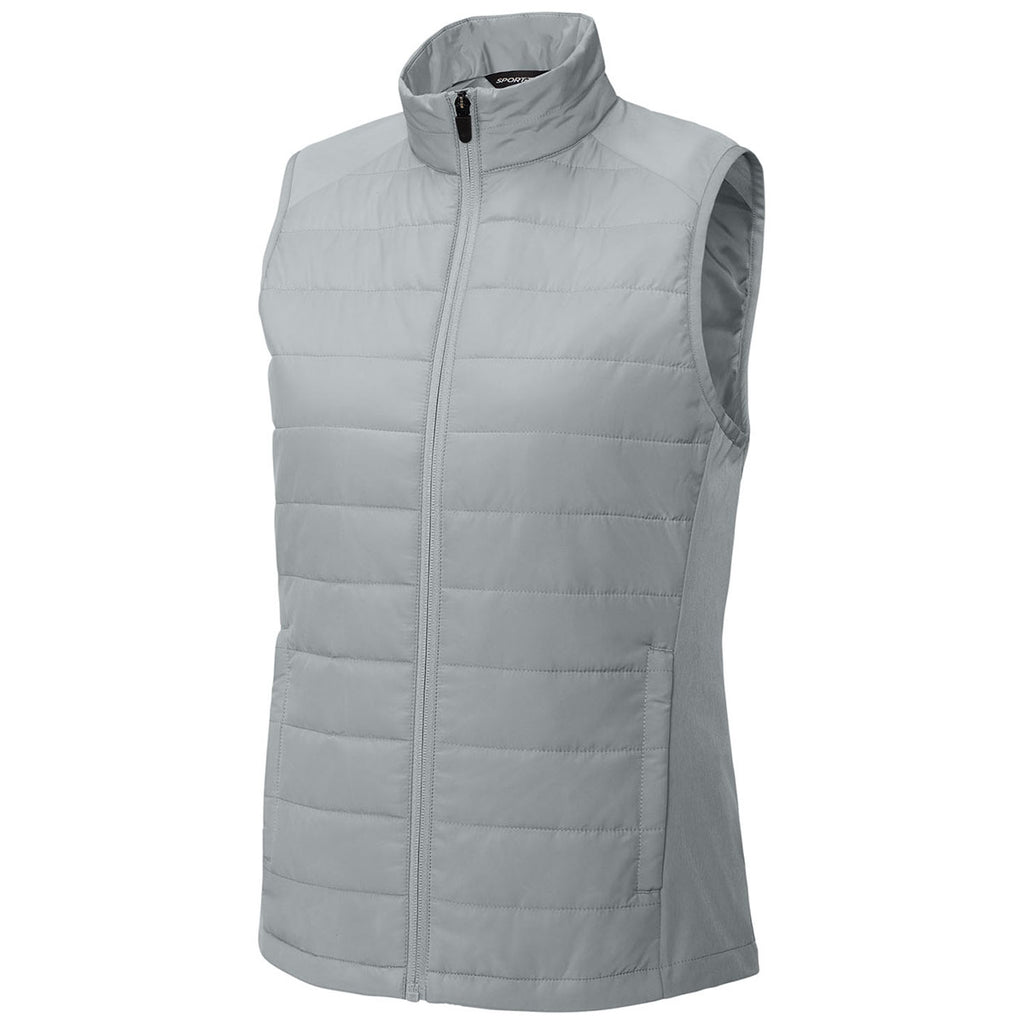 Corporate style blends with comfort in the Sport-Tek Women's Silver Teknical Hybrid Vest. Lightweight insulation offers just the right amount of warmth, while stretch panels provide flexibility. Add a custom logo to create a versatile branded vest ideal for outdoor events, corporate uniforms, or seasonal gifts that reflect professionalism and practicality.