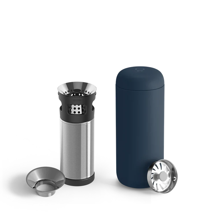The Fellow Stone Blue Carter Infuser Set is perfect for steeping loose leaf tea, making cold brew, and more, thanks to its fine mesh filter and vacuum-insulated design. Built for optimal brewing on the go, this insulated travel mug delivers rich flavor and temperature control for tea and coffee lovers alike.
