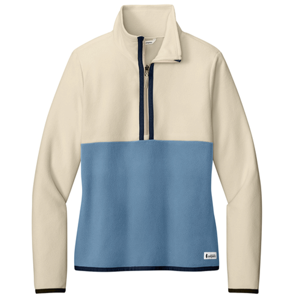Enjoy the custom Cotopaxi Women's Cream/Fjord Amado 1/2-Zip Fleece, which combines a flattering, feminine cut with cozy warmth for all-day comfort. Its lightweight, durable fabric makes it ideal for hiking, travel, or office layering. Perfect for custom branding, this fleece offers functional style and easy care, making it a versatile addition to any wardrobe.This product can only ship within the United States and Canada.