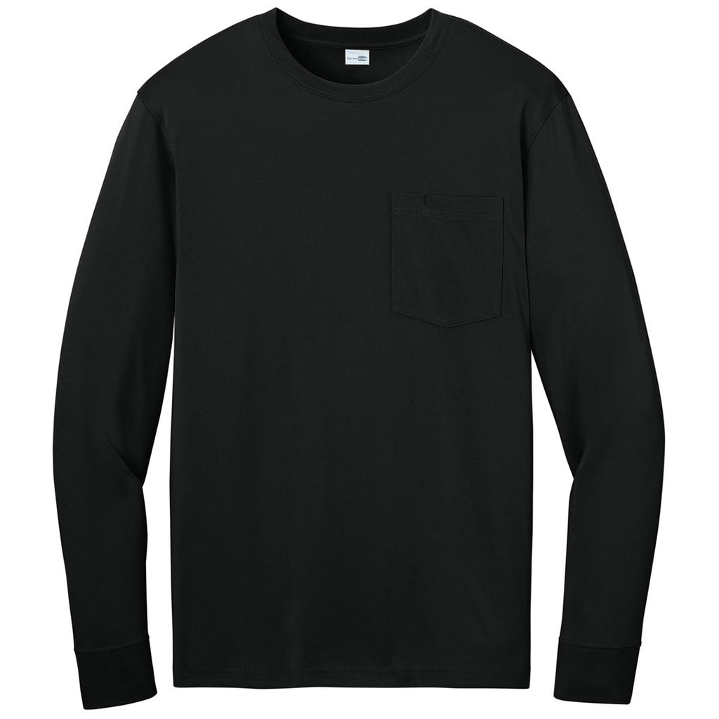 Custom logos enhance the CornerStone Men's Black Workwear Pro Long Sleeve Pocket Tee, a reliable workwear staple. Durable fabric and a convenient pocket make it practical for long days on the job. As corporate apparel, it offers both function and professionalism, giving employees a comfortable uniform piece that reflects your brand.