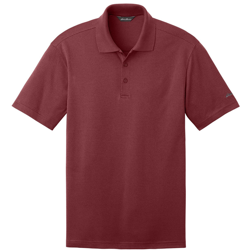 There are a lot of variables that go into making an everyday, work-ready polo. Consider this Eddie Bauer Men's Red Rhubarb Performance Polo, for example. Featuring a 4.7oz. lightweight construction, it feels great all day long-almost as if you're not even wearing it. And with attention to detail like a flat knit collar and three buttons dyed to match the fabric, you can't go wrong with the style, either. This is the polo that makes for ideal layering-or can be used around the office as perfect employee wear. If you need a new employee uniform that's stylish and durable, add your logo to this polo with our custom embroidery process. Not your run-of-the-mill polo. This cotton-rich, high-performance essential wicks moisture and controls odor for optimal comfort. With an easy care blend, it also resists wrinkles and shrinkage and features UPF 30 sun protection for wherever adventure takes you.