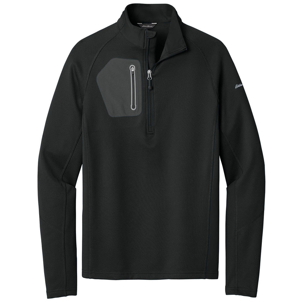 Want a little bit of contrast from the usual fleece jacket something that says you're conventional on the surface but just a little bit different? Then you've come to the right place. The Eddie Bauer Men's Black Half Zip Performance Fleece Jacket has all of the usual things that makes Eddie Bauer fleece so great: a great fabric blend, reverse coil zipper, open cuffs, etc. But the contrast pocket in front really does a lot to elevate this piece into something else entirely. Simply add your custom logo to make this piece your piece, as well as a great piece of corporate swag that people will love wearing throughout the cooler months.