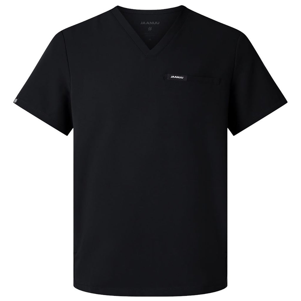 Jaanuu Men's Black Platt 3-Pocket Scrub V-Neck Top