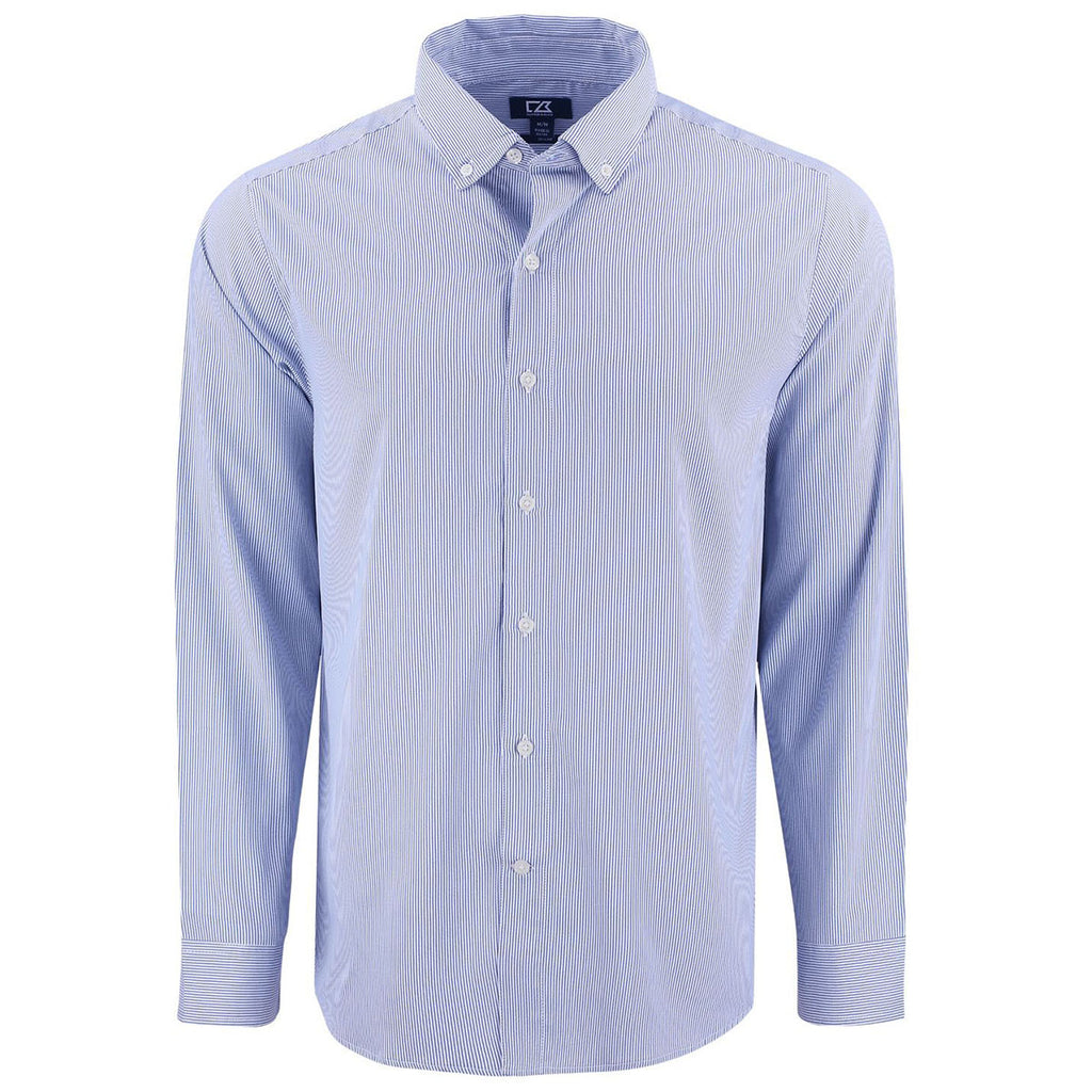 Cutter & Buck Men's Tour Blue/White Skyline Epic Confidence Recycled Pinstripe Long Sleeve Dress Shirt