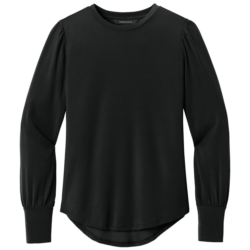 Mercer+Mettle Women's Deep Black Stretch Jersey Long Sleeve Blouson Top with custom printed design delivers comfort and style in one sophisticated package. The stretch fabric ensures a flattering fit while allowing for a full range of movement. Perfect for casual and business wear, this top offers a polished look while keeping you comfortable throughout your day.Highlights