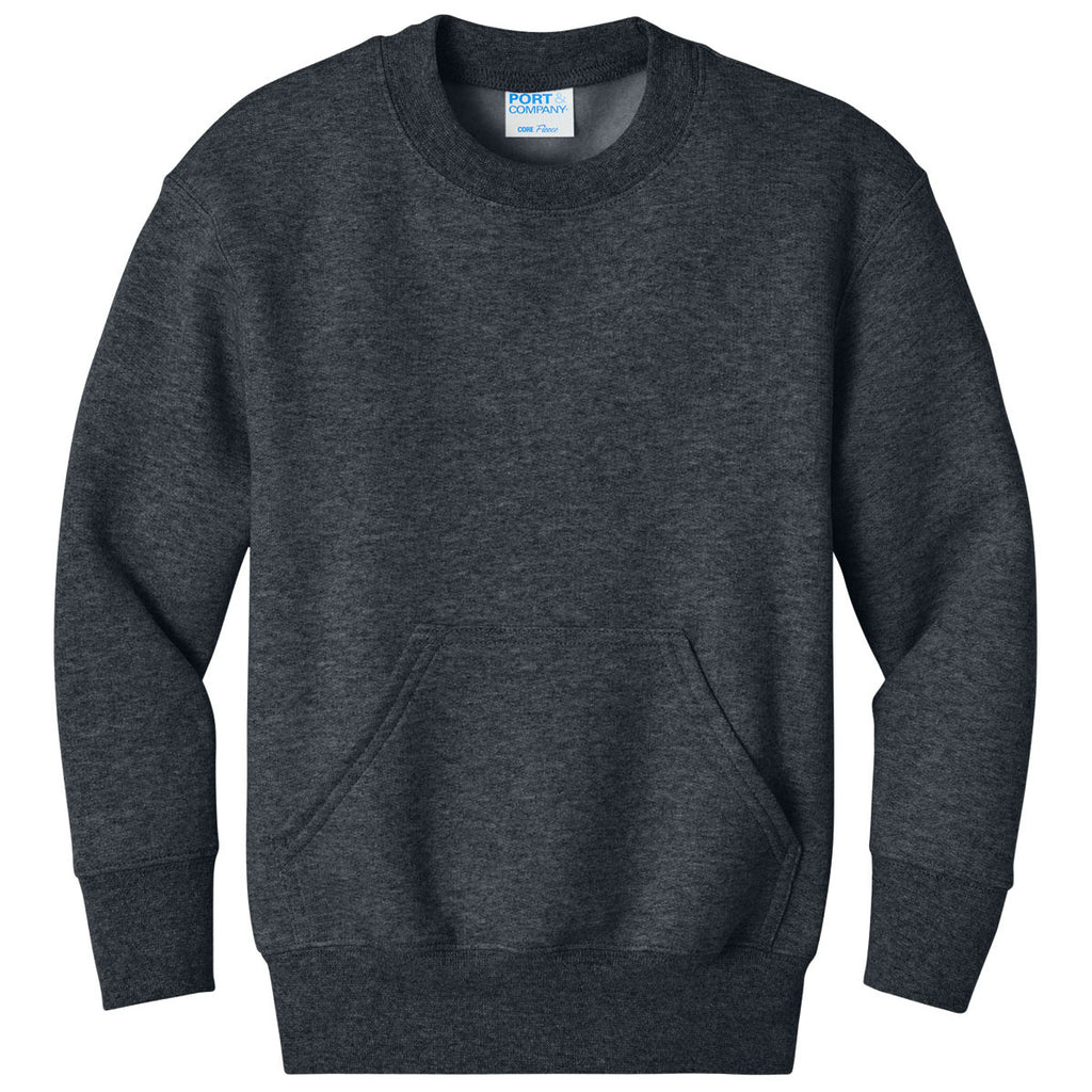 Port & Company Youth Dark Heather Grey Core Fleece Crewneck Pocket Sweatshirt