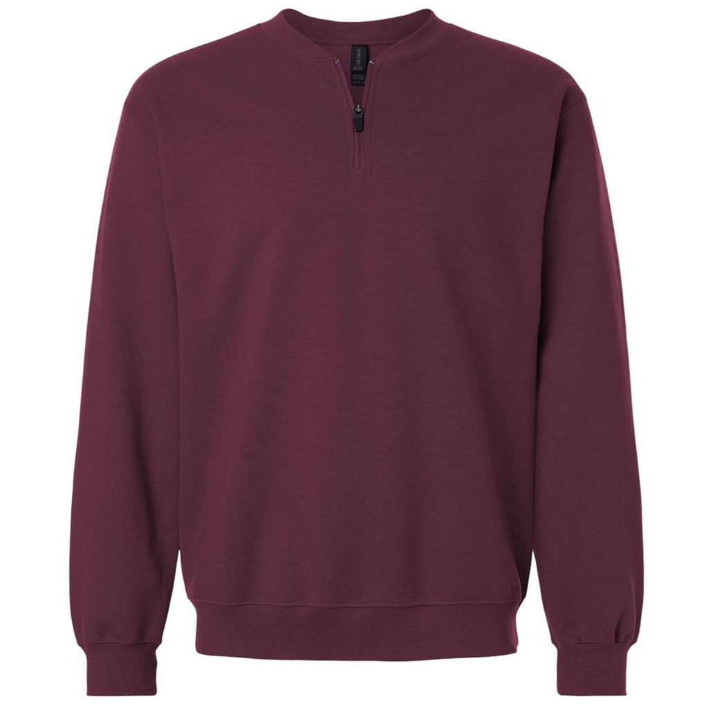 The Gildan Unisex Maroon Midweight 1/4 Zip Sweatshirt is a versatile corporate staple designed for transitional weather and easy layering. Soft fleece inside and a stand-up collar are great for on-the-go teams or casual staff apparel. Choose this custom option when you want professional comfort without the bulk.Highlights