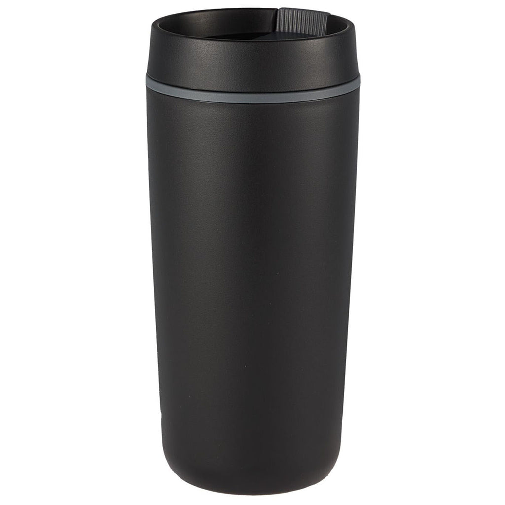 Bullet Black Grande 16oz Recycled Tumbler with a corporate logo is a fun way to keep your favorite drink at the right temperature as you go through your day. This air-insulated design has double-wall construction and a press-on lid with a slide-lock opening for convenient sipping. Perfect as a gift or promotional item.