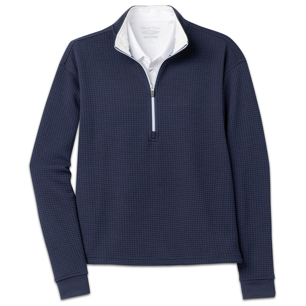 Designed with comfort and movement in mind, the Straight Down Women's Indigo Opal Half Zip fits seamlessly into any custom apparel collection. Lightweight and breathable, it layers well for travel or cool-weather outings. The relaxed fit and mock neck add casual sophistication, making it a go-to for active or branded wear.Highlights